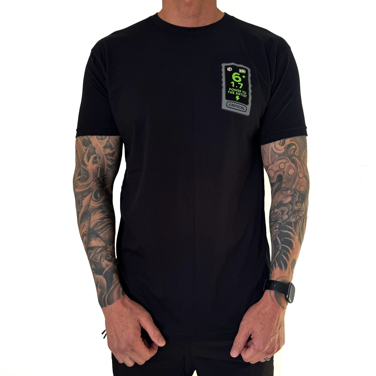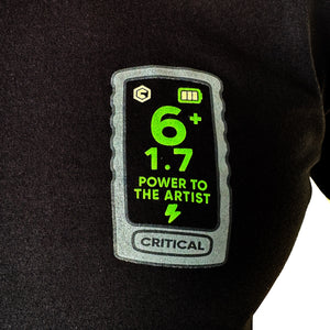 A comfortable 100% cotton 'Power to the Artist' Critical logo tee, printed locally at T-Shirt Labs.