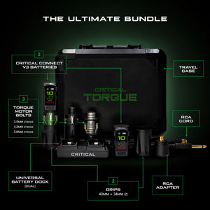 Built for artists who want it all, the Critical Torque Ultimate Bundle delivers every stroke option (3.5, 4.2, 5.0) in one complete kit, paired with the industry’s 1st Precision Strike Technology for smoother, faster, and more efficient tattooing.
