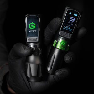 With Vibration Dampening Solution, artists can tattoo longer with less fatigue, while the Critical Connect V3 Batteries (with intuitive 1.5” color display and timer) keep you powered through your longest sessions.
